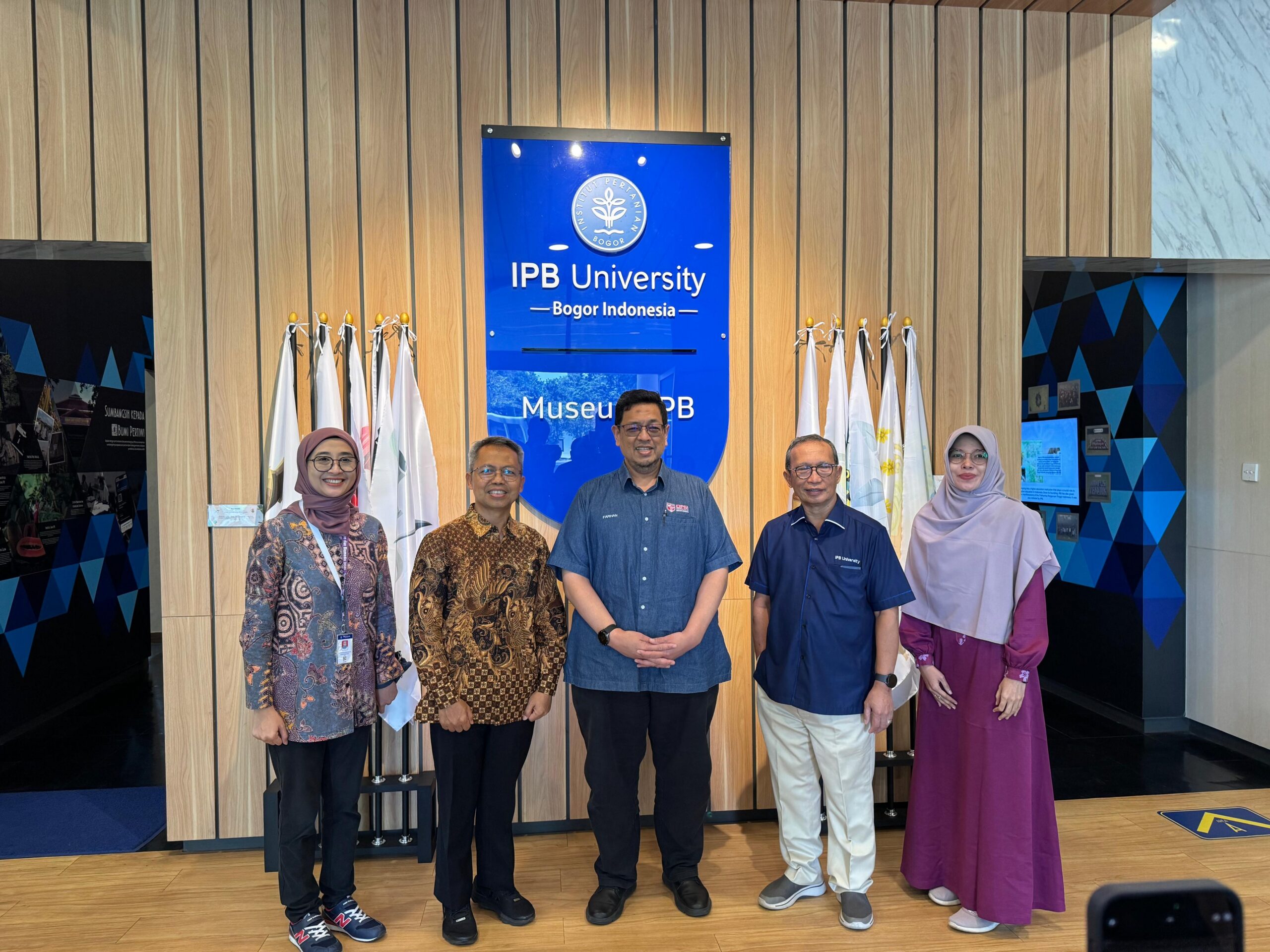 Bogor, 9 Oktober 2025 – IPB University menerima kunjungan kehormatan dari pimpinan Universiti Putra Malaysia (UPM) yang dipimpin oleh YBhg. Dato’ Prof. Ir. Dr. Ahmad Farhan Mohd Sadullah, Vice Chancellor UPM, bersama Prof. Dr. Zamberi Sekawi, Deputy Vice Chancellor (Research & Innovation) UPM. Kunjungan ini disambut langsung oleh Prof. Deni Noviana, Wakil Rektor Bidang Pendidikan dan Kemahasiswaan IPB University yang bertindak sebagai Pelaksana Tugas Rektor, beserta jajaran pimpinan IPB University di Kampus Dramaga, Bogor.